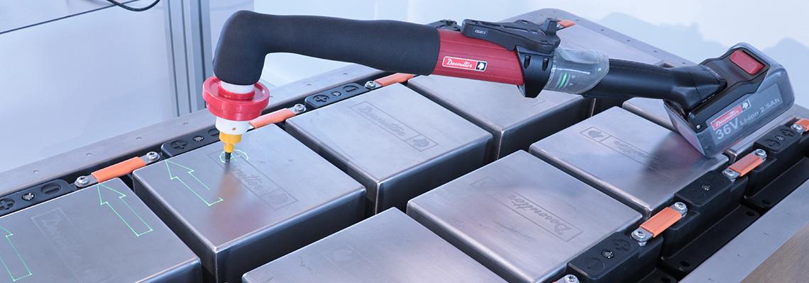 There are dozens of busbar screws on each battery pack. To minimize the quality risks, each one of them need to be tightened in the right place and at the right time. Due to the size, operator need to move around the battery pack during the assembly process. Therefore, not only a RTLS (Real-Time Location System) is needed, precise and intuitive operator guidance is crucial to ensure operator will not lose time finding the next screw to tighten.