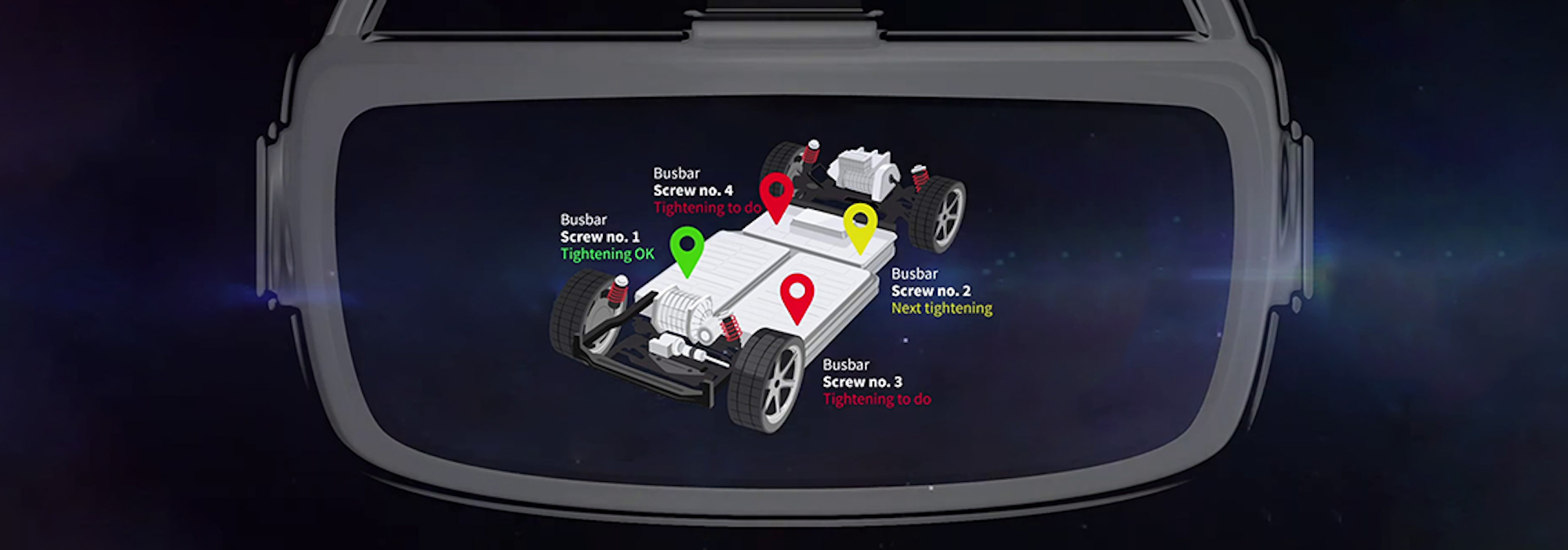 Not only the position information can be visualized, other important information such as the name & sequence of the application, the status of the assembly actions (OK/NOK) are also available. Meaning that for quality check purposes, the engineer doesn’t need to go through all the excel files or server databases to figure out what’s going on in the production line. Just by walking the line with the Hololens headset, the person will get an overview directly in front of his/her own eyes. He/she is able to locate in real-time & re-work the exact NOK parts/screws if needed.