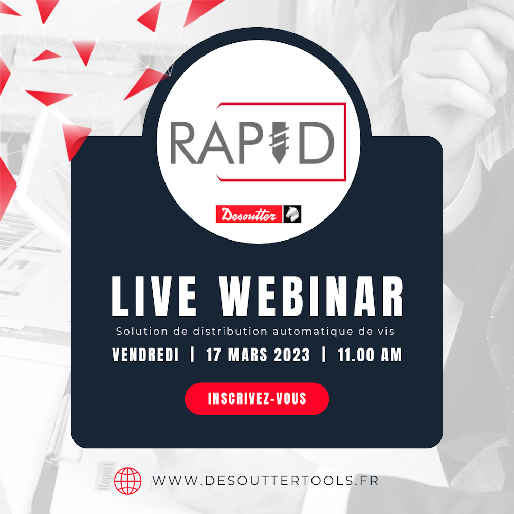 A travers ce webinar d'une trentaine de minutes, découvrez Rapid, notre nouvelle solution de distribution automatique de vis ! Cela vous permettra d'envisager le futur de vos vis sur vos lignes d'assemblages et de découvrir tous les avantages à cette solution automatisée !